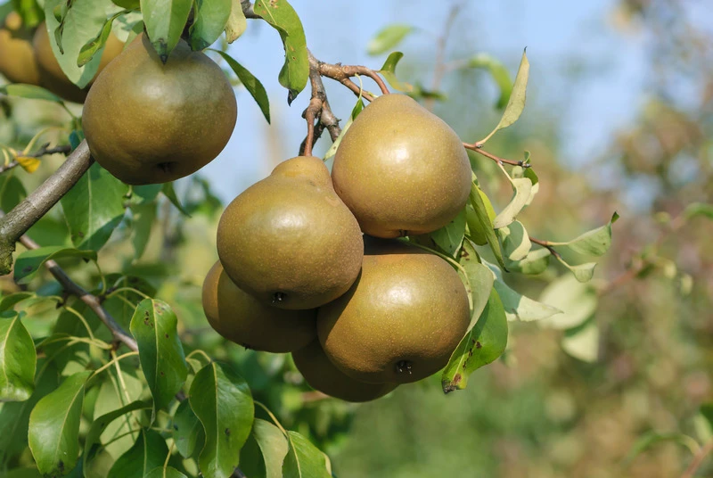 Neuere Birnensorte mit bronzefarbenen, aromatischen Früchten und hoher Beliebtheit.